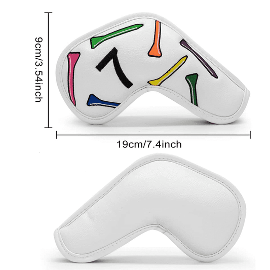 White Leather Colorful Numbers Magnetic Golf Club Iron Headcovers Set