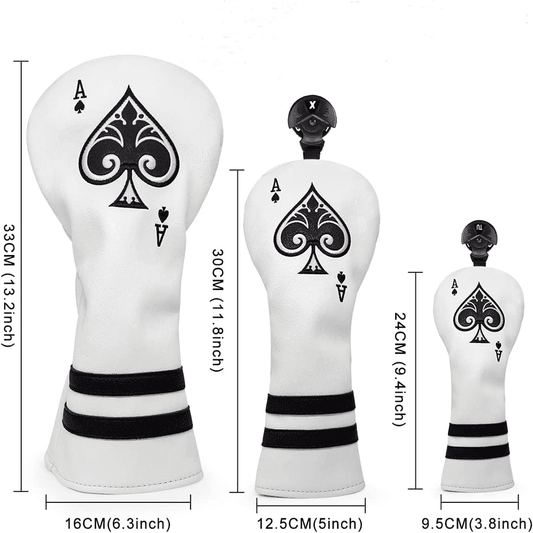 Unleash your inner champion with Gloof Ace of Spades Golf Club Head Covers. These striking and dynamic Poker Ace golf headcovers exude a sense of confidence and skill. Crafted with utmost attention to detail, they provide superior club protection while making a powerful statement on the fairways. Let the Ace of Spades symbolize your determination and drive to succeed in every swing.Step onto the course with style and unleash your winning spirit with our Ace of Spades Golf Head Covers.